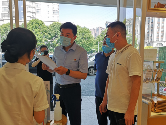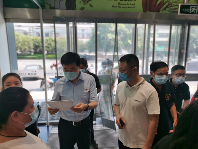 8月2日,高新区工委副书记黄文豪带队深入辖区江金市场、商场超市、食品经营门店,检查疫情防控工作落实情况,高新区管委会办公室副主任朱海波、高新区市场监管局党委书记、局长李平华等陪同检查。