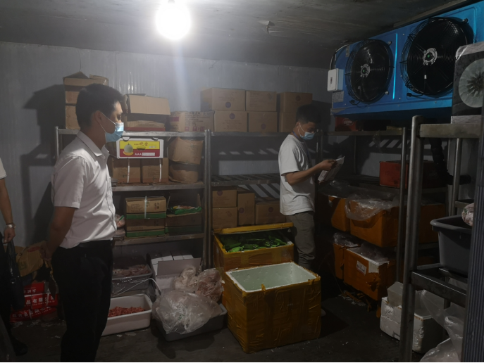 会议结束后,该局迅速行动,再次对辖区进口冷链食品经营单位开展专项检查。至8月9日,该局共出动执法人员40人次,共检查进口冷链食品经营单位60家,其中餐饮经营单位15家,超市5家,水果店29家,大型酒店5家,食品生产企业6家;重点检查相关单位购入进口冷链食品是否按时报备,是否做好从业人员自身防护,是否落实“三专”、“四证”要求,是否录入“湘冷链”监管平台,是否进行了环境和物品消毒,监管人员、从业人员、环境、食品、包装“五检测”记录是否齐全等方面。