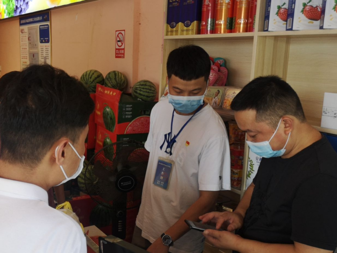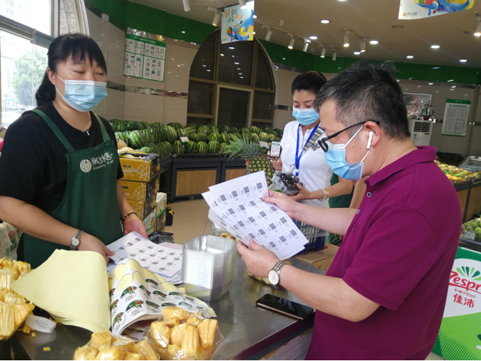 (高新区市监局工作人员在某水果店检查经营者使用“湘冷链”平台赋码情况)