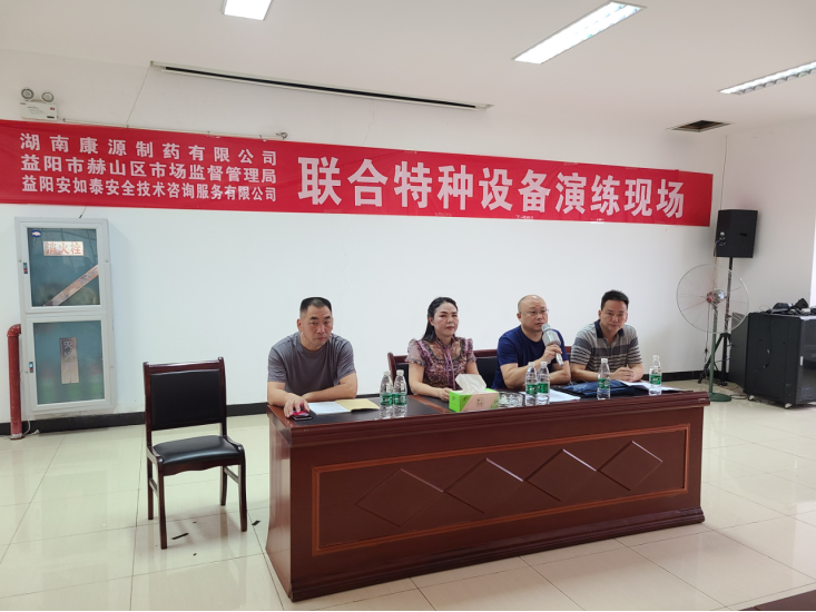 为全面落实特种设备使用单位安全主体责任,提高企业应急反应能力和抢险实战能力,9月2日,赫山区市场监督管理局组织湖南康源制药有限公司益阳分公司开展特种设备应急救援演练。
