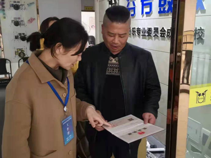 执法人员正在检查校外培训机构的证照 执法人员重点检查校外培训机构营业执照和许可证是否齐全,牌匾、宣传展板、海报、师资信息及价格收费公示等宣传内容是否规范。期间,共清理撤除违规教育培训类广告牌、巨型海报、展板广告等83块,清理彩页广告单300余份,并对某校外培训机构涉嫌虚假宣传进行立案调查。