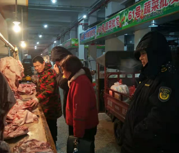 1月29日凌晨3点,天还没有亮,沅江市市场监管局执法人员却奔赴各大猪肉市场,开始进行节前安全监督检查。
