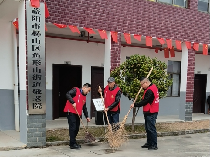 鱼形山市场监管所支部组织党员来到鱼形山街道敬老院,为老年人打扫周边庭院卫生,整理床铺,让他们感受春日的温暖。