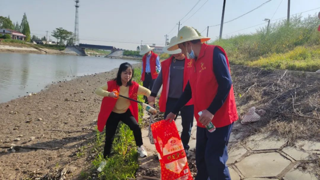 五七运河连贯洞庭湖与大通湖,是引流洞庭湖活水交换大通湖水体的重要通道。近年来,五七运河责任单位认真履行河长制职责,扎实开展河道疏浚、环境治理等行动,切实加强河道管理和保护,有效改善了河道生态环境。四月的运河两岸,春风怡人、花红柳绿,波光粼粼的河面与两岸风光铺陈出一幅和谐美丽的水乡画卷。活动中,志愿者们身着红色马甲,手执简易工具,针对“乱占、乱采、乱堆、乱建”四乱现象,捡拾河道边的烟头、纸屑、塑料袋等垃圾,拔除河岸杂草,同时还给沿河居民和过往行人发放禁磷宣传资料,宣传禁磷知识。