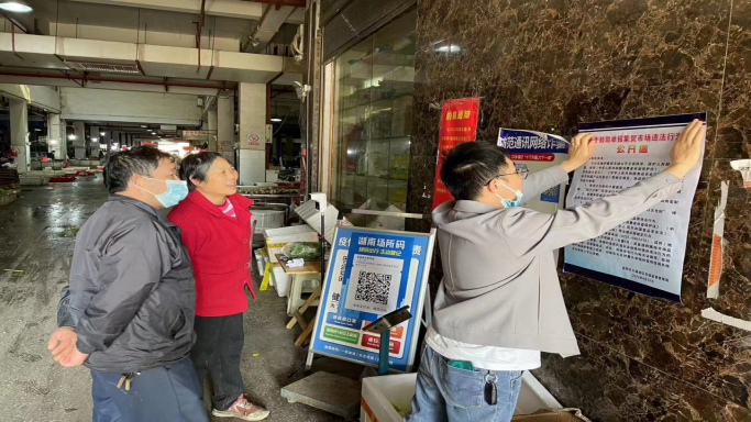4月20日,大通湖区市场监督管理局执法人员在辖区内主要农贸市场、大型商超的醒目位置张贴《关于鼓励举报集贸市场违法行为的公开信》,不少群众纷纷围观点赞。