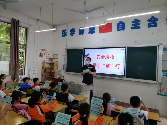“叔叔,我可以把这些宣传资料带回家给爸爸妈妈和其他小伙伴们看吗,让他们也懂得儿童化妆品的安全使用知识。”在安化县东坪镇萸江学校一间二年级教室内,一名小学生对现场的工作人员说道。