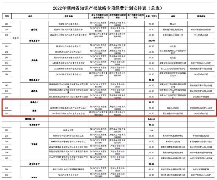 日前,湖南省市场监督管理局公示了2022年湖南省知识产权战略专项经费计划安排名单,“南县稻虾米”省级地理标志保护示范区项目及南县职业中等专业学校2022年中小学知识产权教育示范学校项目榜上有名,荣获2022年度省知识产权战略专项经费支持30万元。