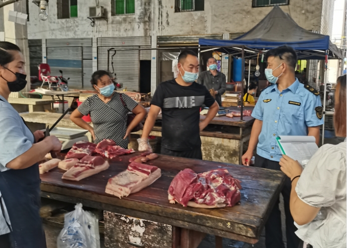 巡查农贸市场 携手共防,惩处有力。制定主要领导带班,轮流带队开展监管巡查工作制度,充分发挥区食安办综合协调“指挥棒”作用,开展疫情联防联控检查行动,加大违法违规行为打击力度,发现问题及时通报并配合做好处置工作。
