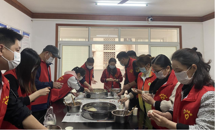 在活动现场,志愿者身着红马甲早早来到光荣院看望慰问在院老人,为老人送去温暖和关怀,与老人进行亲切地交谈,听退伍老兵讲述革命故事。志愿者帮老人们剪头发、测血压、包饺子,为老人提供“面对面、零距离”志愿服务,通过一系列活动,拉近了志愿者和老人们的距离,光荣院里处处欢声笑语、暖意融融。