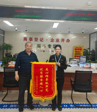 5月15日,安化县市民之家政务大厅市场监管窗口一天收到了两面锦旗,上面分别印着“悉心指导效率高,优质服务暖人心”“真情实意送服务,热心为民暖人心”,向窗口人员在帮助其申办证照过程中贴心、高效、细致的服务表示真挚感谢。