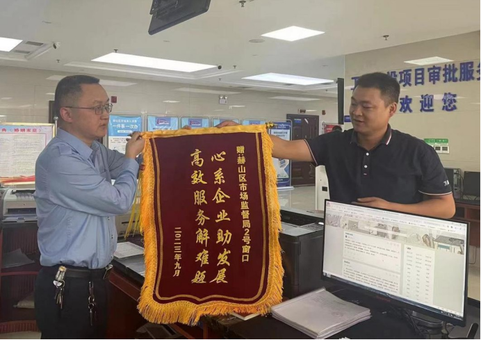10月16日上午,湖南万胤智能装备有限公司将一面印有“心系企业助发展 高效服务解难题”的锦旗送到了赫山区政务服务中心市场监督管理局2号窗口,对赫山区市场监管局热情高效的服务表示感谢。