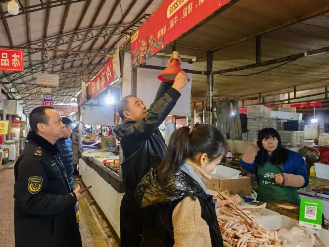 12月12日,资阳区市场监管局联合区商务局执法人员对辖区农贸市场“生鲜灯”更换情况开展突击检查。执法人员先后在学门口市场、天成市场、鹅羊池市场、三益街市场检查发现,经营户大多已拆除了“生鲜灯”并更换为普通照明灯,但学门口市场一经营户仍在继续使用“生鲜灯”。依据相关规定,执法人员当即对该经营户作出行政处罚,给予警告并责令改正。 下一步,资阳区市场监管局将建立长效机制,坚持边排查边整改,并对整改情况开展回头看,确保辖区生鲜食用农产品销售环节照明设施合规,还原生鲜食品“本色”,让消费者买得放心、吃得安心。同时提醒广大市民如发现商家仍在使用“生鲜灯”的行为,可拨打12315进行投诉举报。