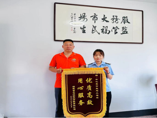 近日,湖南省丰炜实业有限公司负责人给安化县市场监管局大福市场监管所送来了印有“优质高效、用心服务”内容的锦旗,感谢该所在该企业申领食品生产许可证过程中提供的热心服务。
