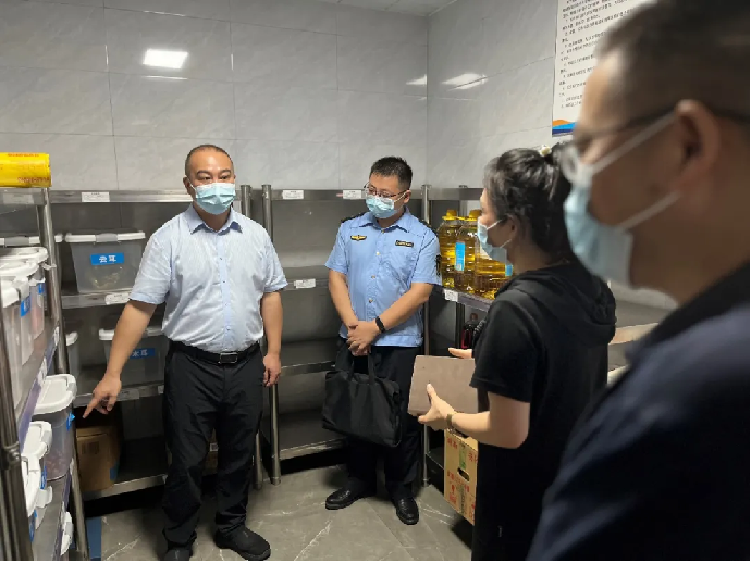 在督导现场,代虹宇对照包保任务清单,详细了解食品安全管理制度的制定,食品安全员及食品安全总监职责的落实,“日管控、周排查、月调度”机制、从业人员管理、进货查验、餐饮具和设施设备的清洁消毒情况以及食品安全事故应急处置措施。