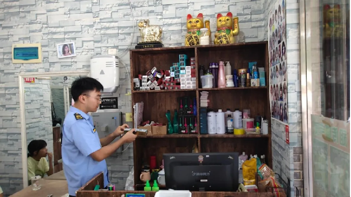 执法人员以化妆品专营店、超市、美容美发机构等为检查对象,重点检查经营单位是否经营“三无”产品;是否落实进货查验、索证索票制度;经营的产品是否经过注册或备案;产品包装标签信息及功效宣称是否符合要求等。共出动执法人员30人次,检查化妆品经营店、美容美发店共15家,暂未发现相关问题。