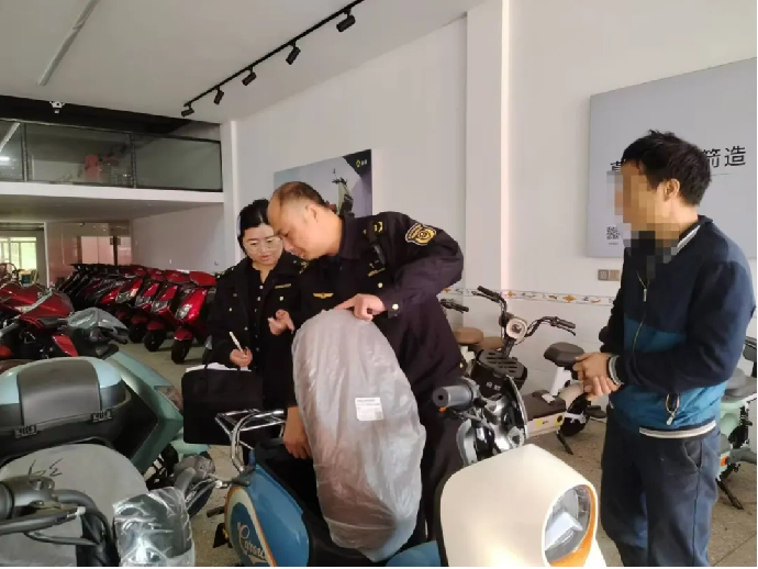 今年以来,资阳区市场监督管理局持续开展电动自行车、电动摩托车全链条整治行动,依法严查市场上在售电动车及配件的进货来源、质量状况、认证标识、广告宣传等内容。在检查中,执法人员重点检查各销售商在售的电动车是否符合新国标要求,是否取得CCC认证,在铭牌、电池、充电器上标注的参数内容是否与产品合格证上信息一致,是否存在销售“三无”产品、冒用CCC认证、非法改装拚装、篡改标识内容、加装后备箱以及价格欺诈、虚假宣传等违法违规行为。督促经营者严格落实进货查验、索证索票等相关制度,认真把好商品进货关、质量安全关,确保电动车及驾乘人员行车安全。