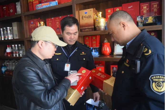“现在出发!”上午8:40分,一声令下,40余名执法人员分成两个行动小组,由两名局领导分别带队,迅速赶往早前已全面摸排掌握的110多家酒类经营门店。此次行动重点针对大型食品批发市场、城区商贸集中路段、乡镇临街商场超市等区域白酒经营门店,并邀请五粮液、剑南春、水井坊、国窖1573等9家国内知名品牌白酒厂家的打假技术人员,现场对白酒商品进行鉴别并出具鉴定证明书。