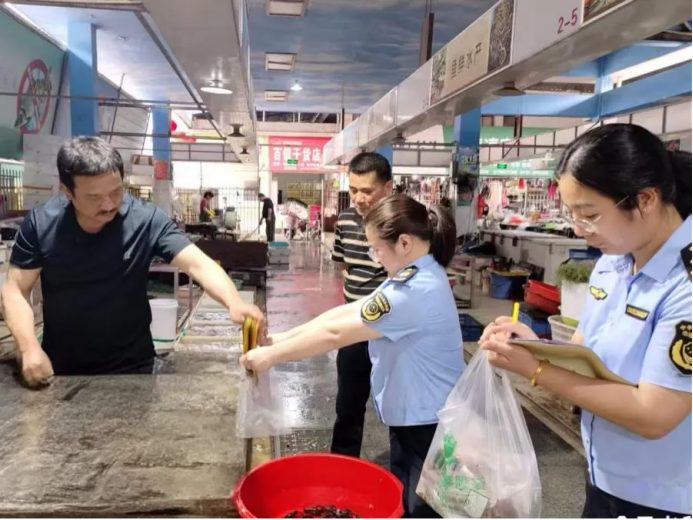 4月9日,沅江市以雷霆之势拉开水产品质量安全专项整治行动序幕。市人民政府副市长钟清华率沅江市市场监督管理局执法工作人员直插湘北市场、西区菜场等一线监管现场,共抽检黄鳝30批次、牛蛙样本2批次,做到对市场上的经营户抽检无死角。以“零容忍”姿态向食品安全隐患亮剑,全力推动市民餐桌从“吃得忧心”向“吃得优质”转变。