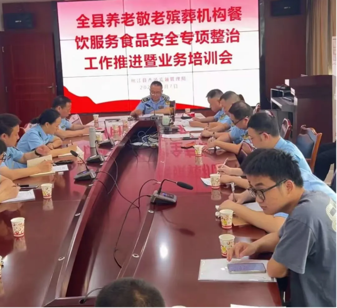 同时,召开全县养老敬老殡葬餐饮服务食品安全专项整治工作推进暨业务培训会议,组织40余名相关餐饮经营单位管理人员、从业人员及监管人员开展食品安全集中培训,全面提升食品安全管理水平和操作能力。