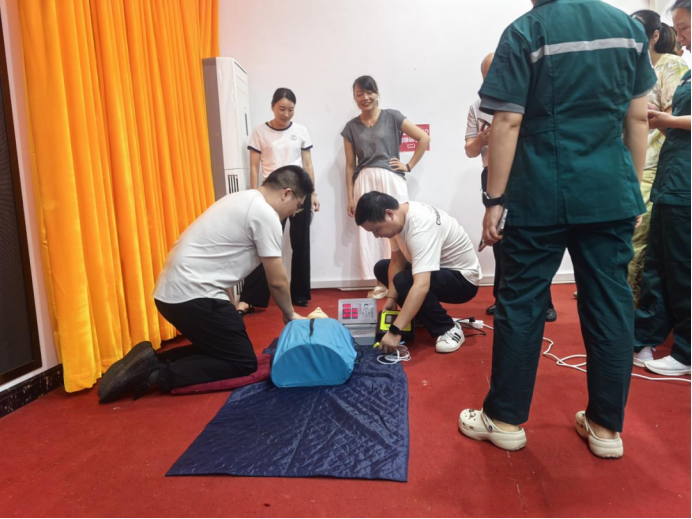 区人民医院派出十余名培训老师现场教学指导,聚焦守护生命的“黄金4-6分钟”,系统传授心肺复苏与AED使用、创伤急救、突发事件应对等核心技能,通过“理论+实操+考核”“线上+线下”相结合的模式全流程培训,结合动画演示与互动问答、模拟操作,帮助学员快速建立知识框架,确保技能“学得会、用得上”。