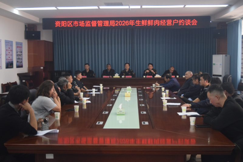3月12日下午,一场关乎“肉盘子”安全的特殊会议在资阳区市场监管局召开。针对资阳辖区内“网红猪肉”经营潜在的安全隐患,资阳区市场监管局联合长春镇政府,对辖区内3家屠宰场、沅益公路沿线13户网红猪肉商贩开展集中约谈。