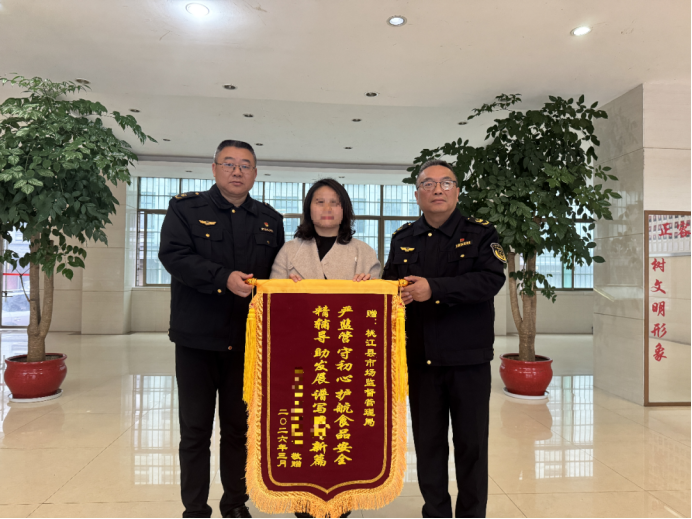 3月20日,桃江县某食品公司相关负责人专程来到桃江县市场监督管理局,将一面印有“严监管守初心护航食品安全 精辅导助发展谱写公司新篇”的锦旗送到该局负责人手中,感谢该局对企业的精心指导和无私帮助。这面锦旗背后,是该局推行“服务抽检”的一次生动实践。