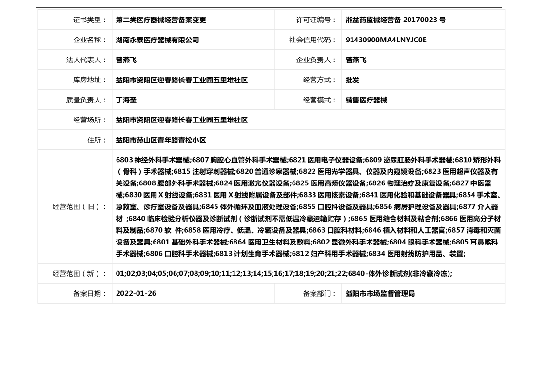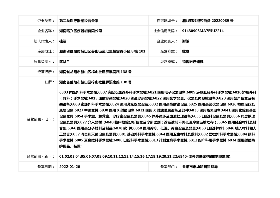 | 医疗器械生产经营许可(备案)信息公示(2022年第04号) |
