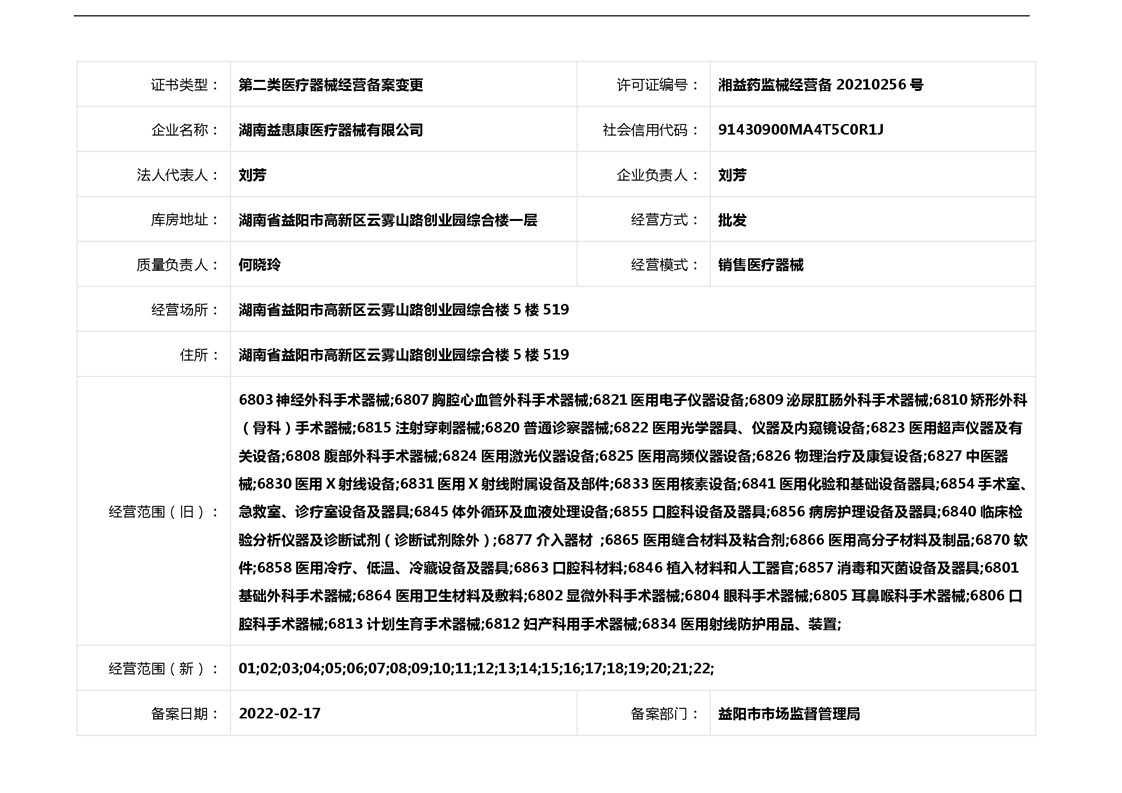 | 医疗器械生产经营许可(备案)信息公示(2022年第05号) |