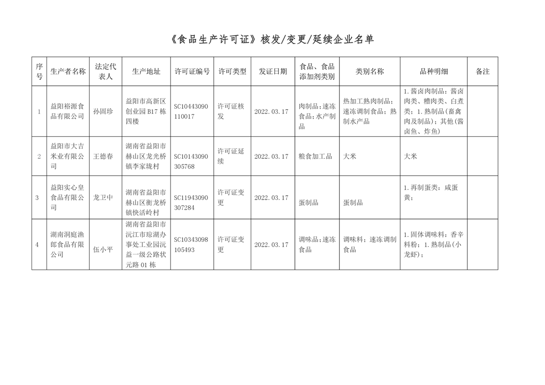 | 2022年第6期《食品生产许可证》核发/变更/延续公告 |