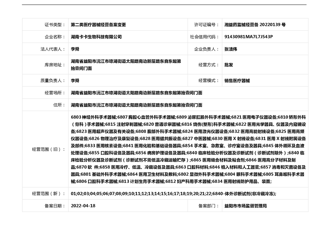 | 医疗器械生产经营许可(备案)信息公示(2022年第14号) |