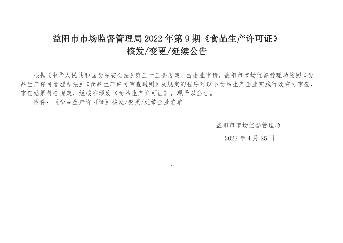 | 2022年第9期《食品生产许可证》核发/变更/延续公告 |