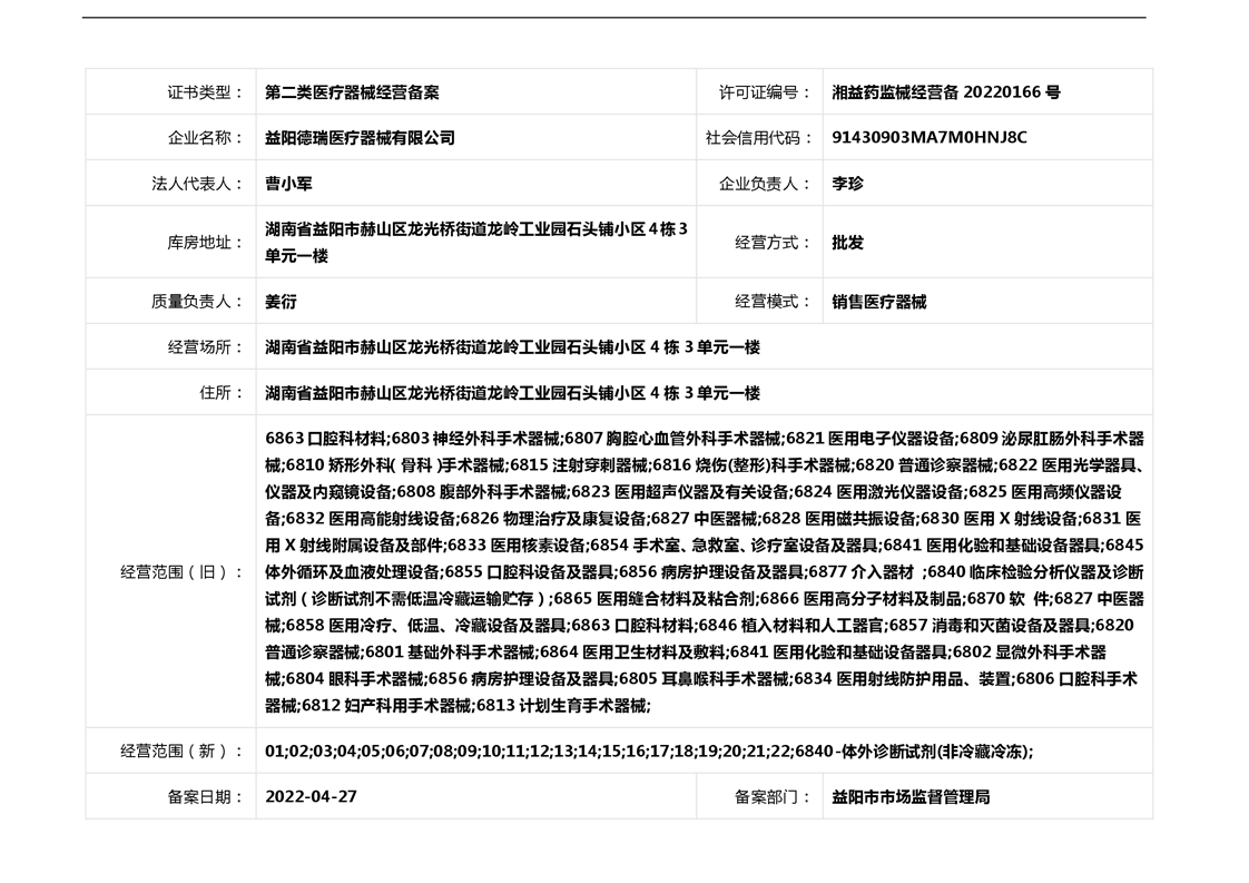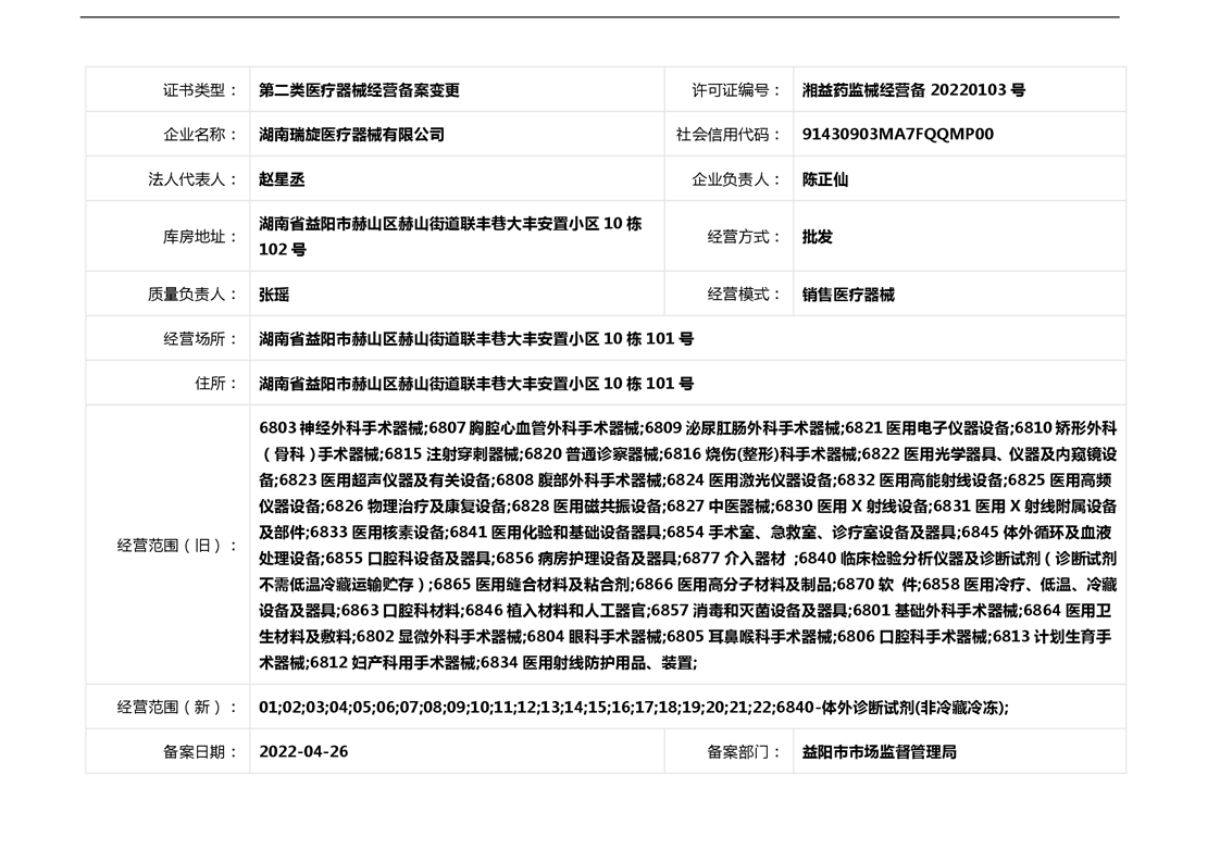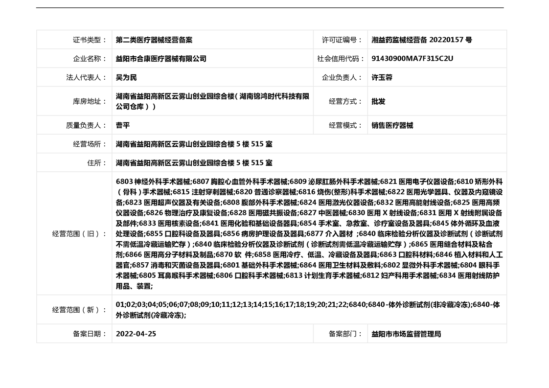 | 医疗器械生产经营许可(备案)信息公示(2022年第15号) |