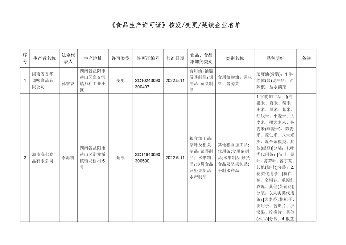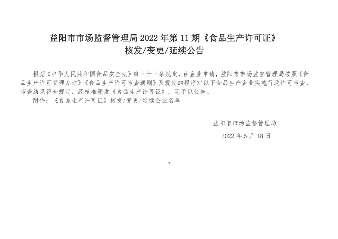 | 2022年第11期《食品生产许可证》核发/变更/延续公告 |
