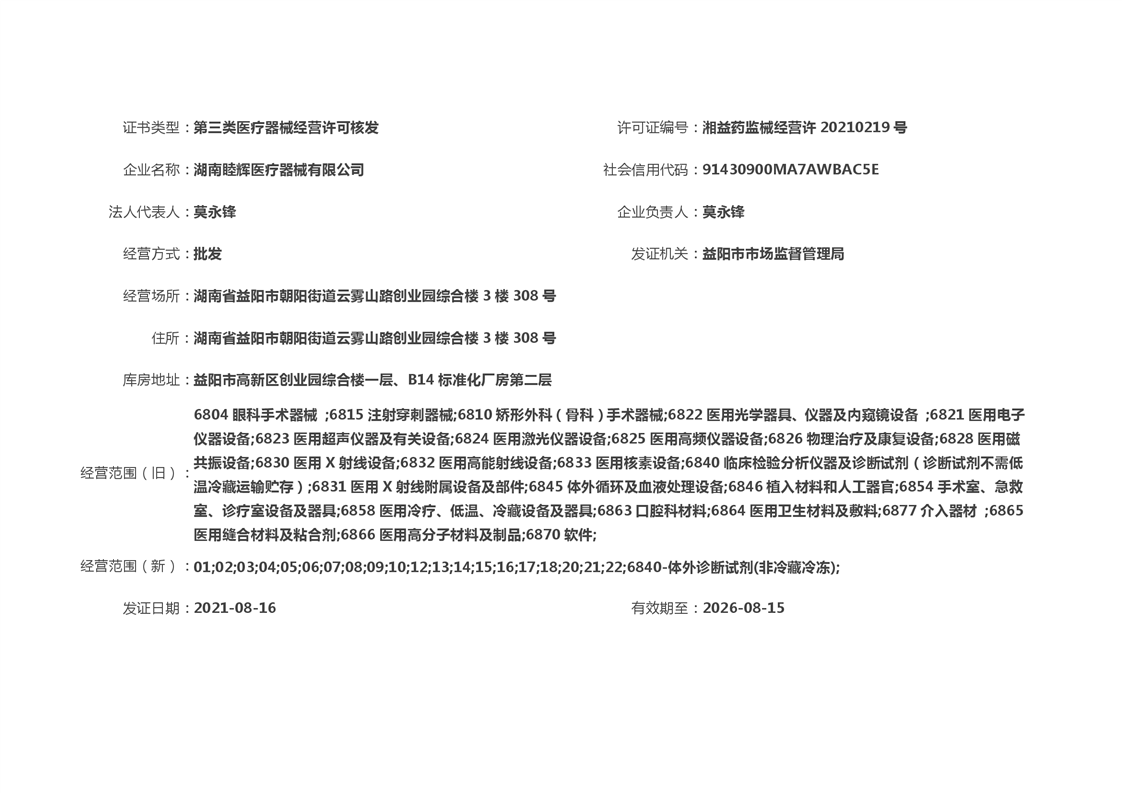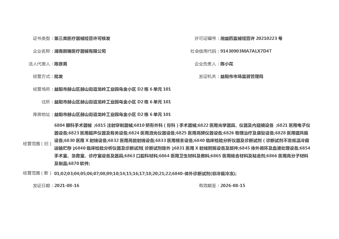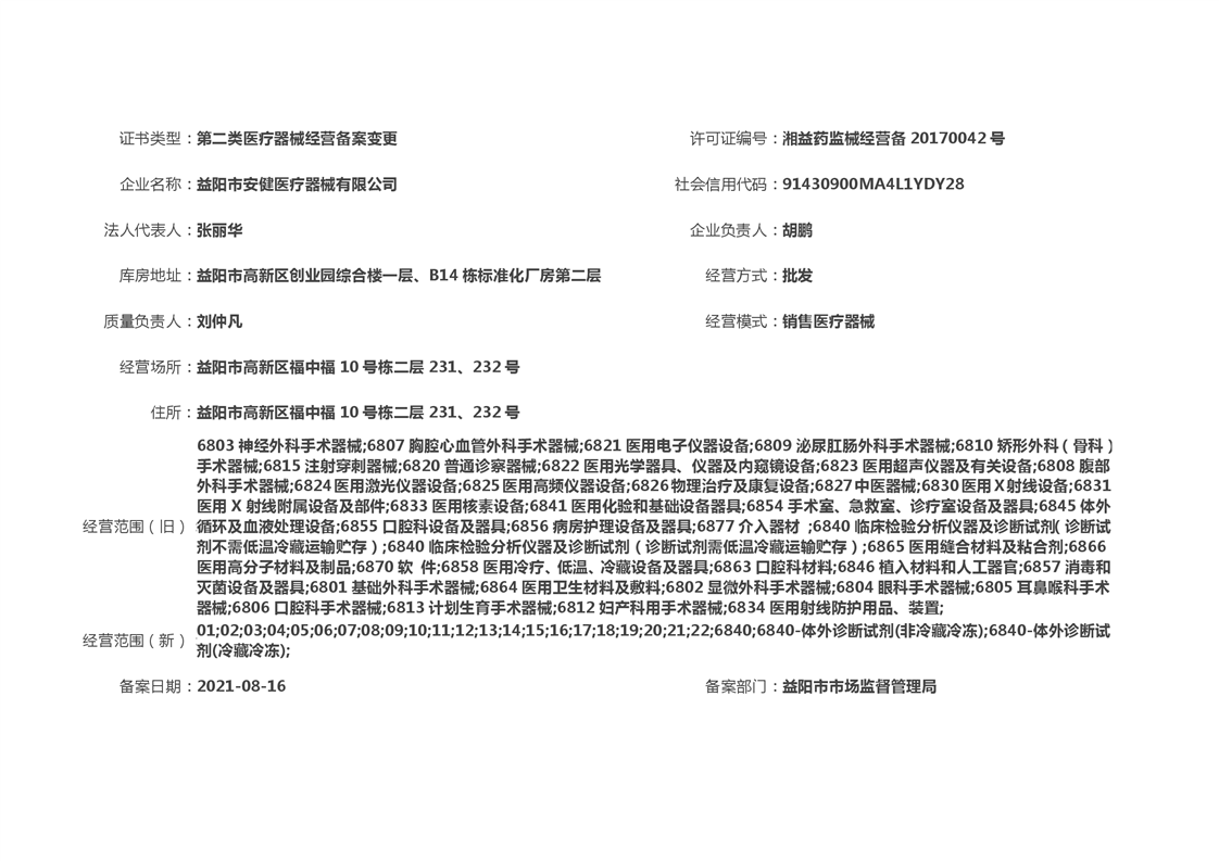 | 医疗器械经营许可信息公示(2021年第30号) |