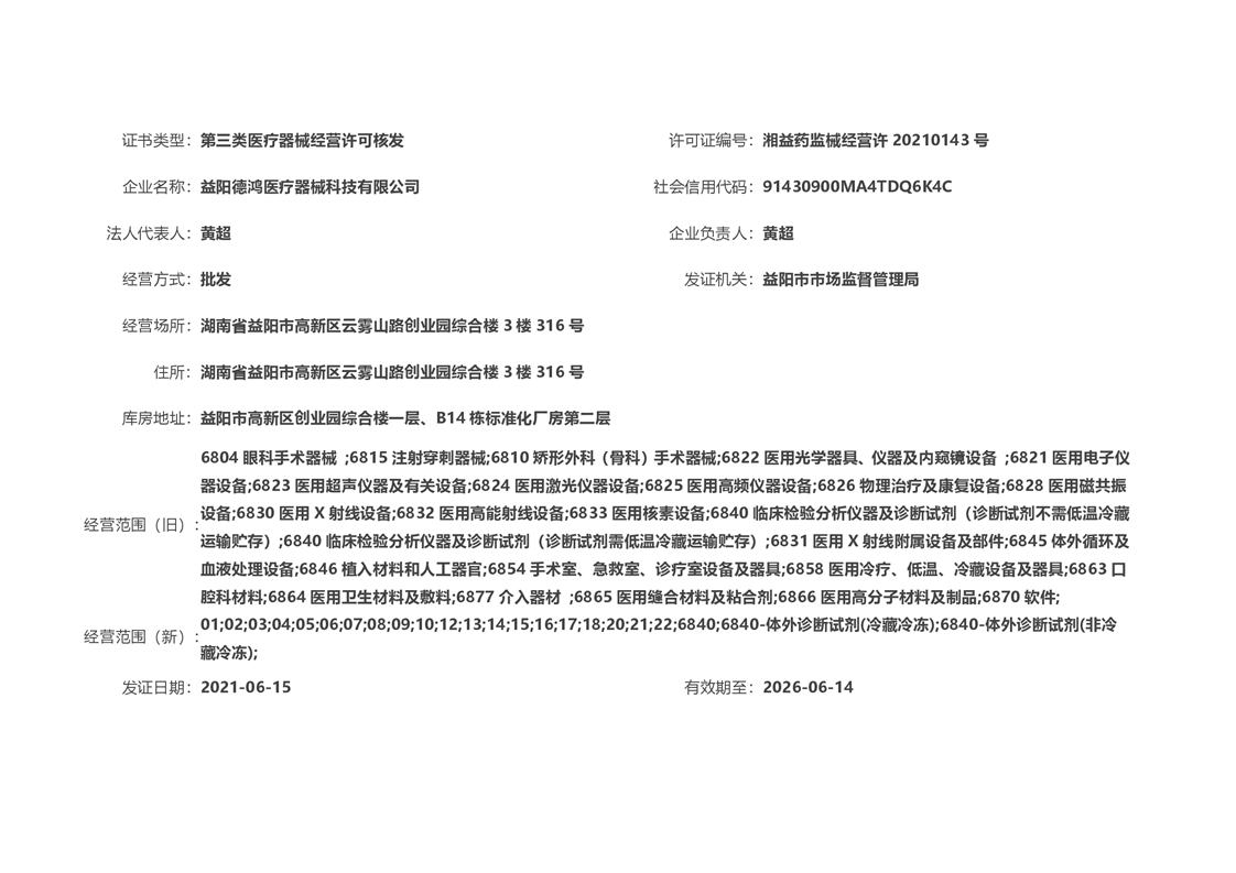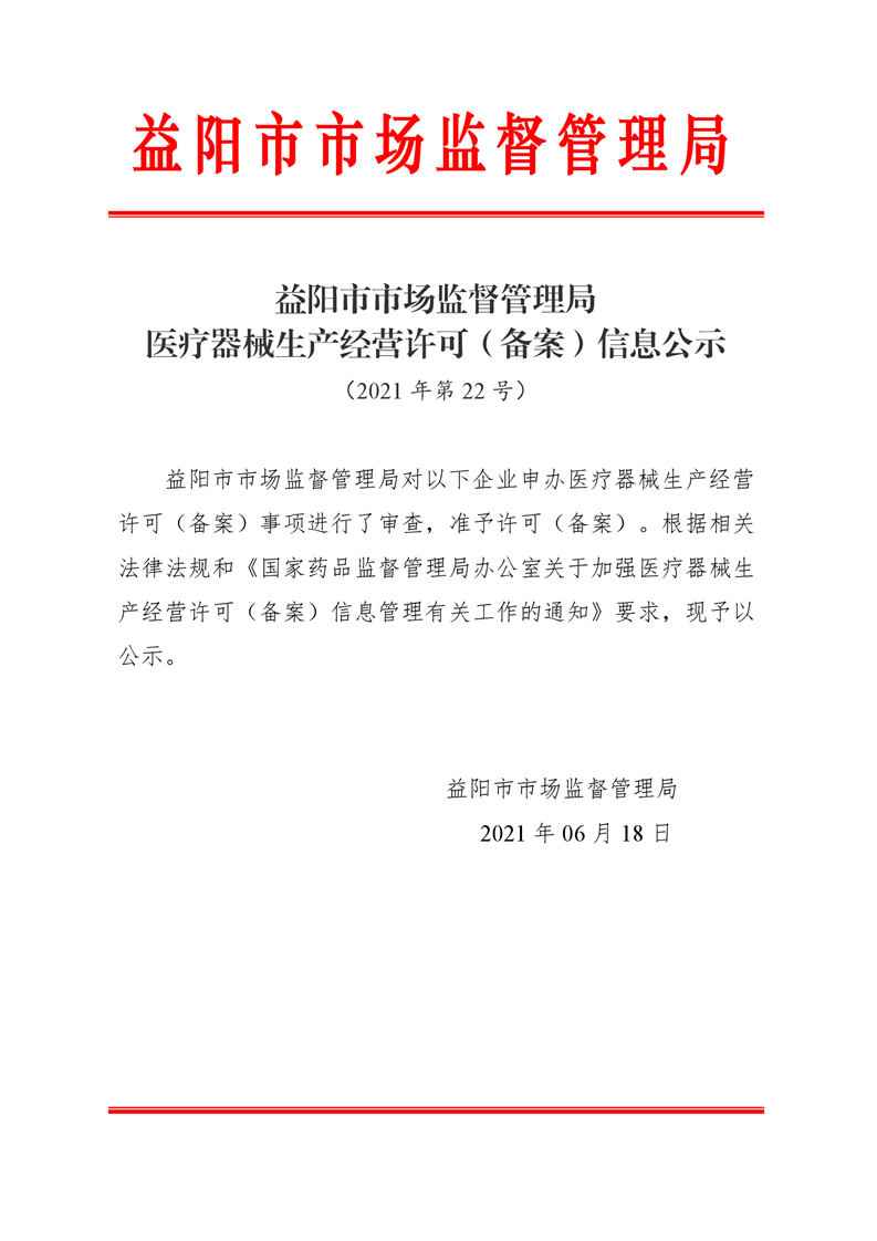 | 医疗器械经营许可信息公示(2021年第22号) |