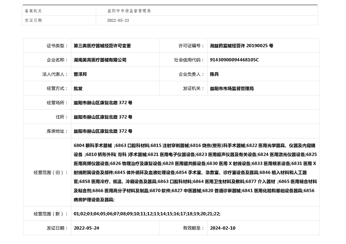 | 医疗器械生产经营许可(备案)信息公示(2022年第19号) |
