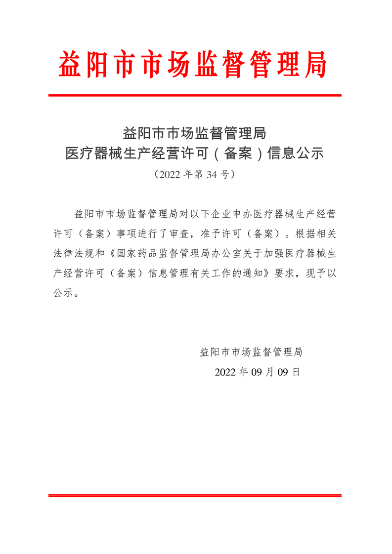 | 医疗器械生产经营许可(备案)信息公示(2022年第34号) |