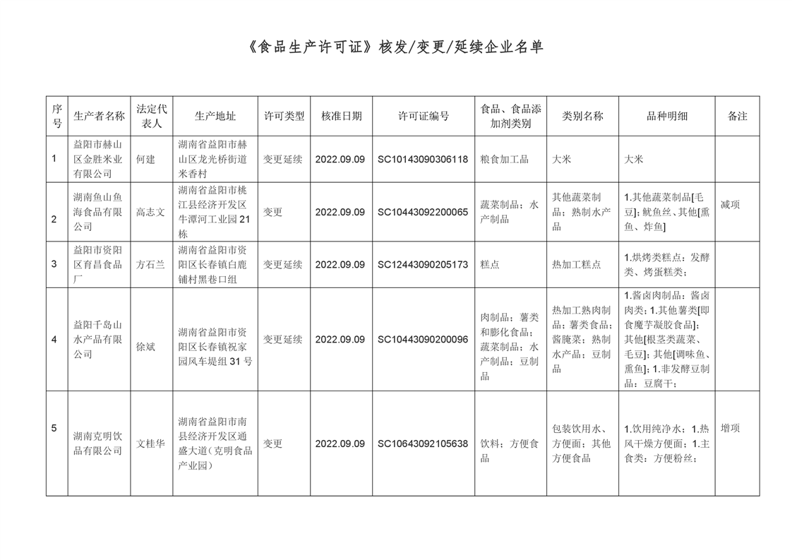 | 2022年第20期《食品生产许可证》核发/变更/延续公告 |