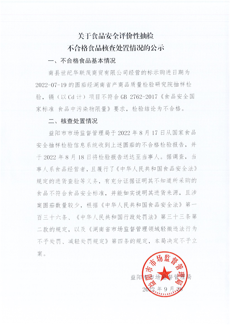 | 关于食品安全评价性抽检不合格食品核查处置情况的公示 |