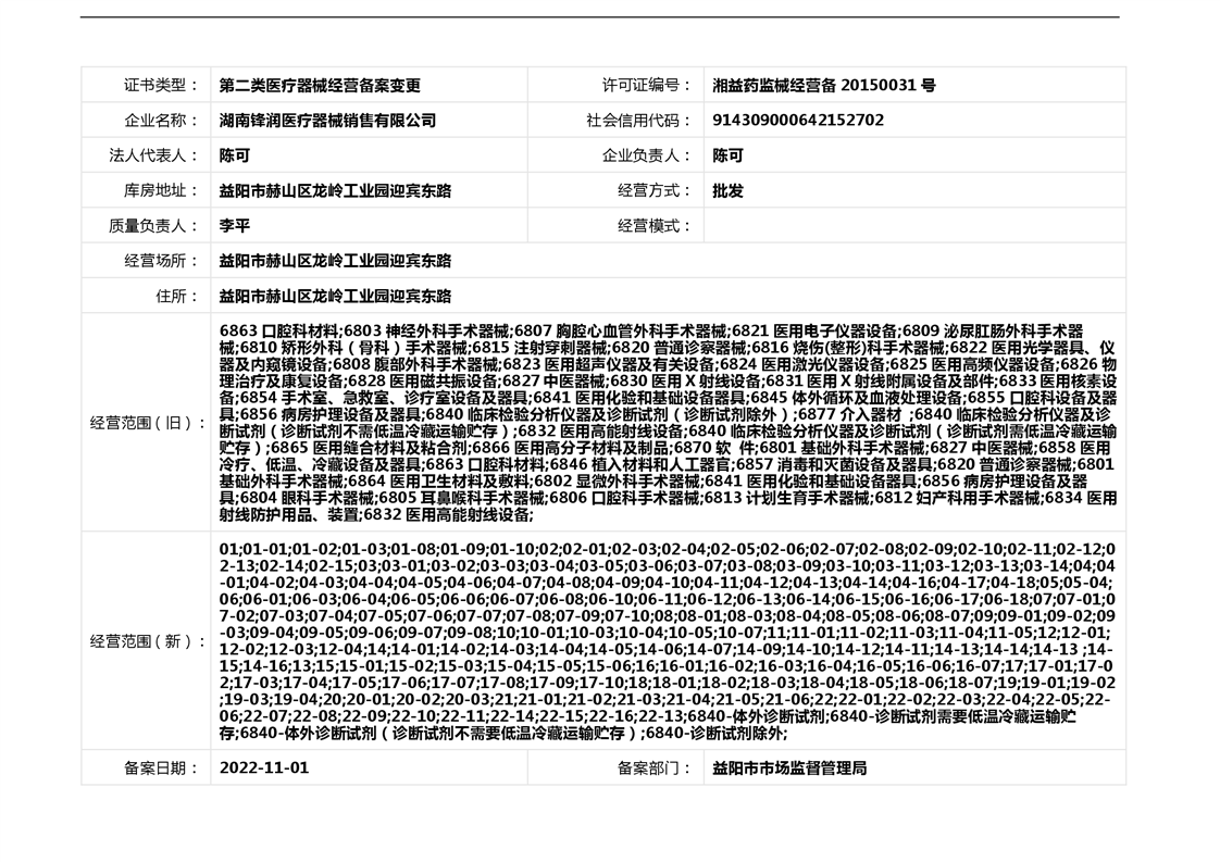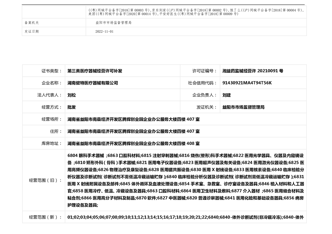 | 医疗器械生产经营许可(备案)信息公示(2022年第41号) |