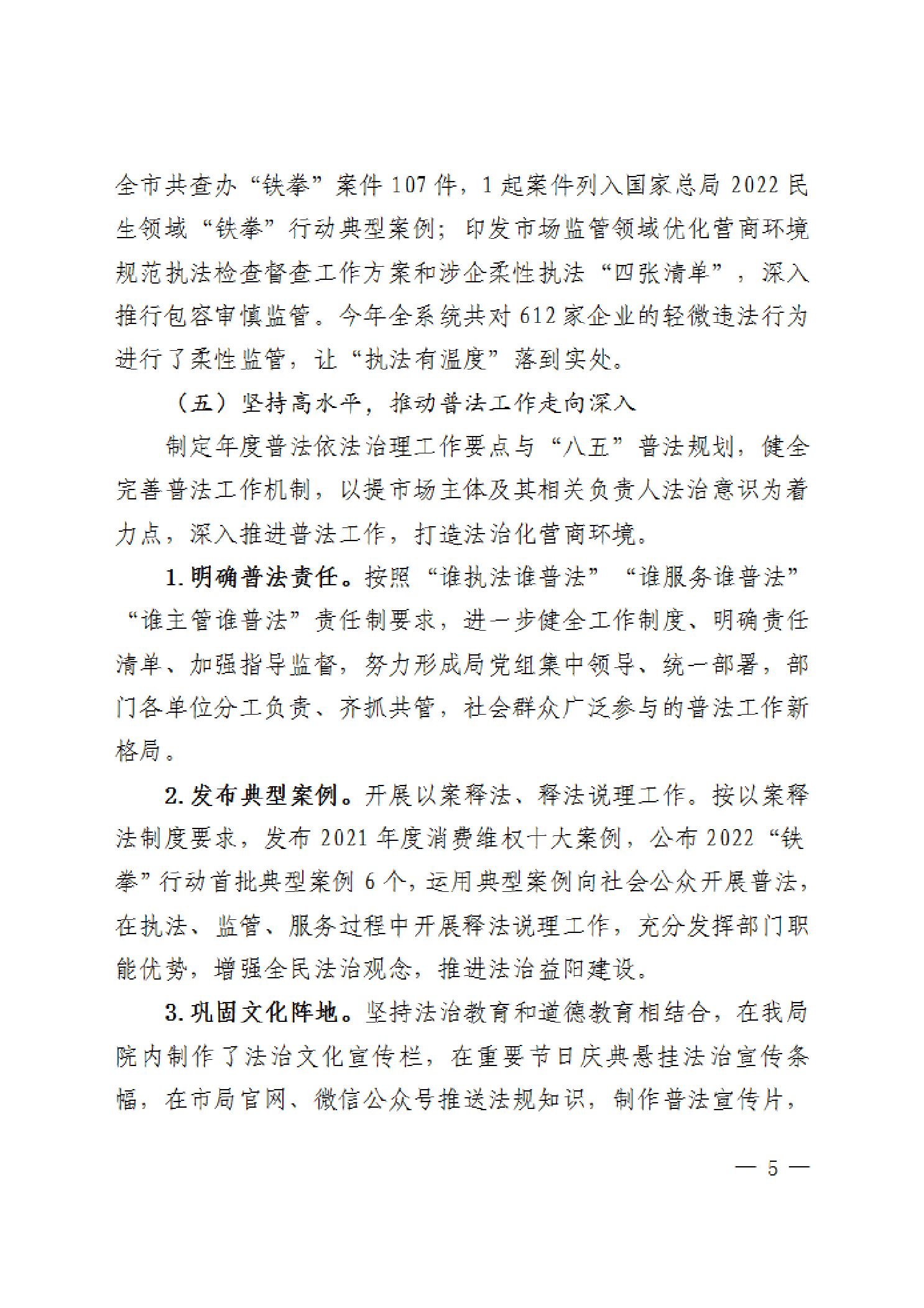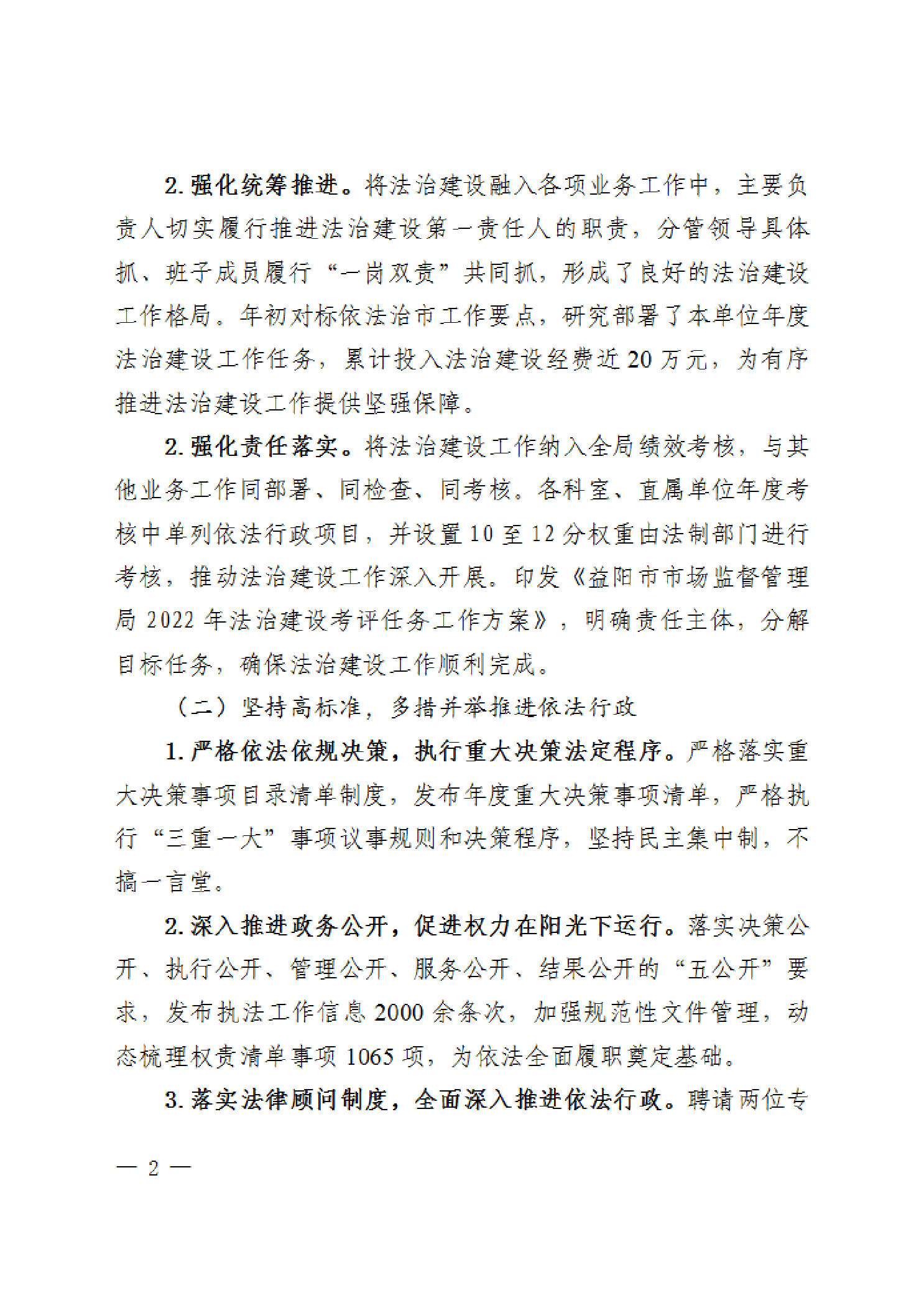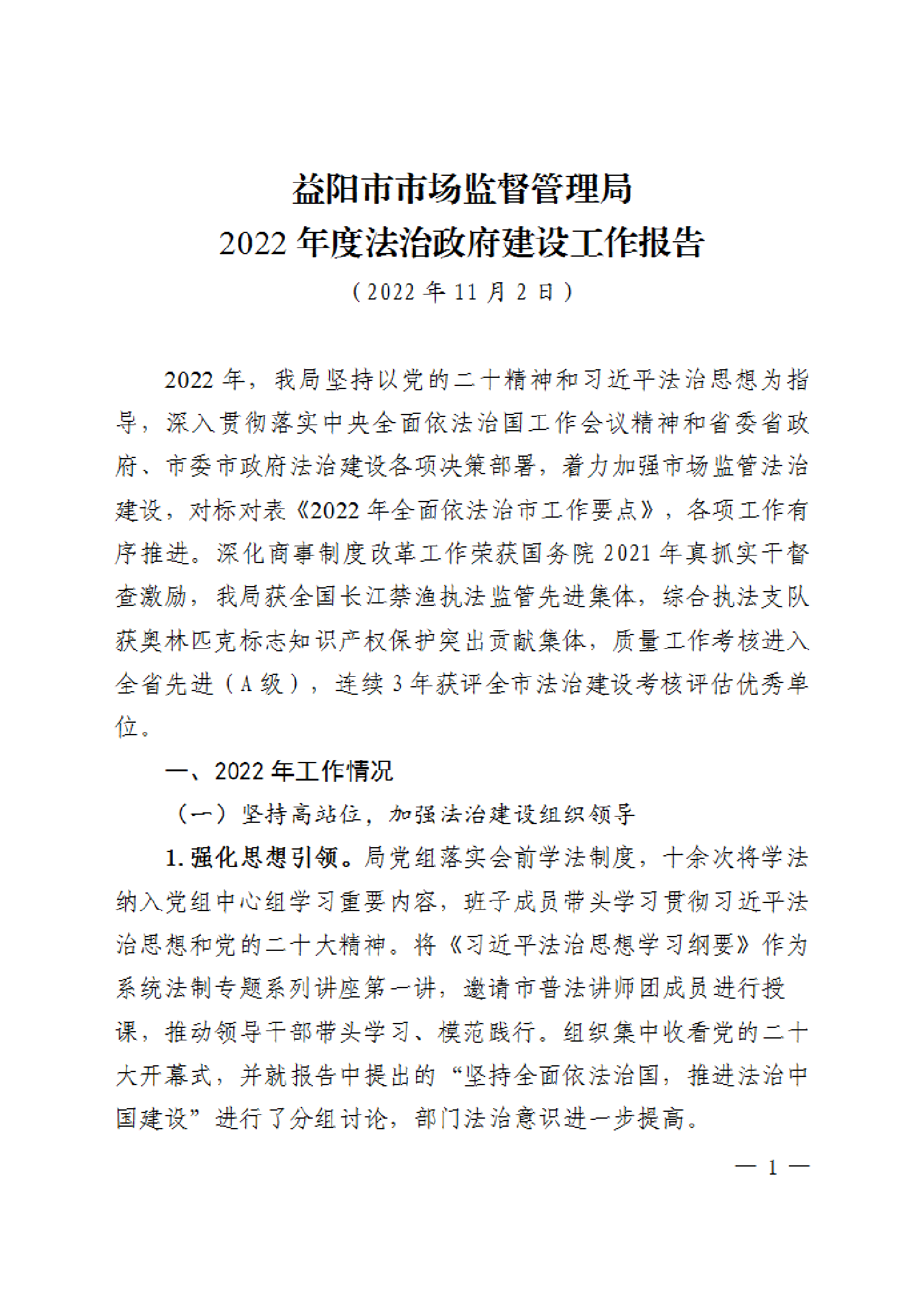 | 益阳市市场监督管理局2022年度法治政府建设工作报告 |