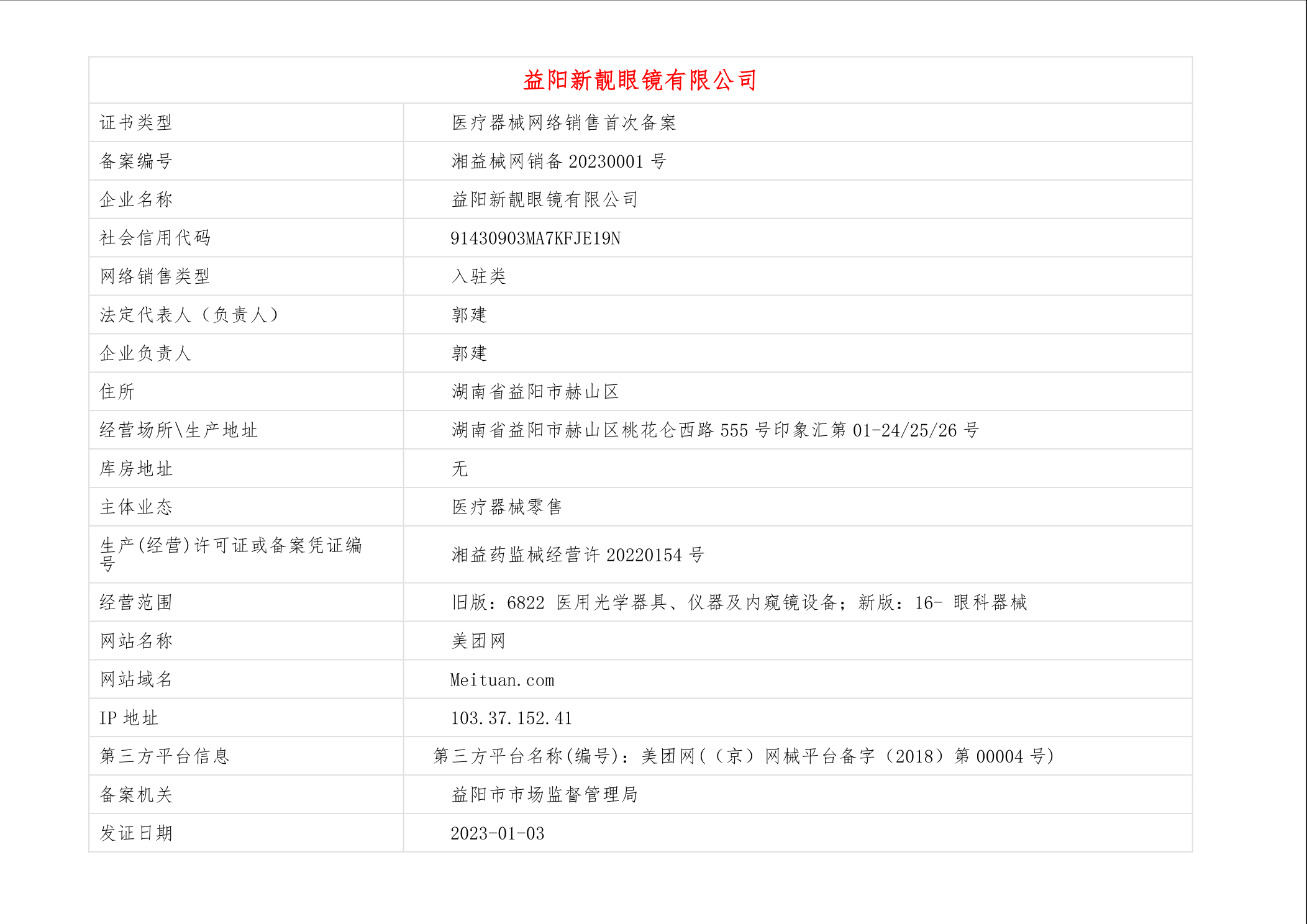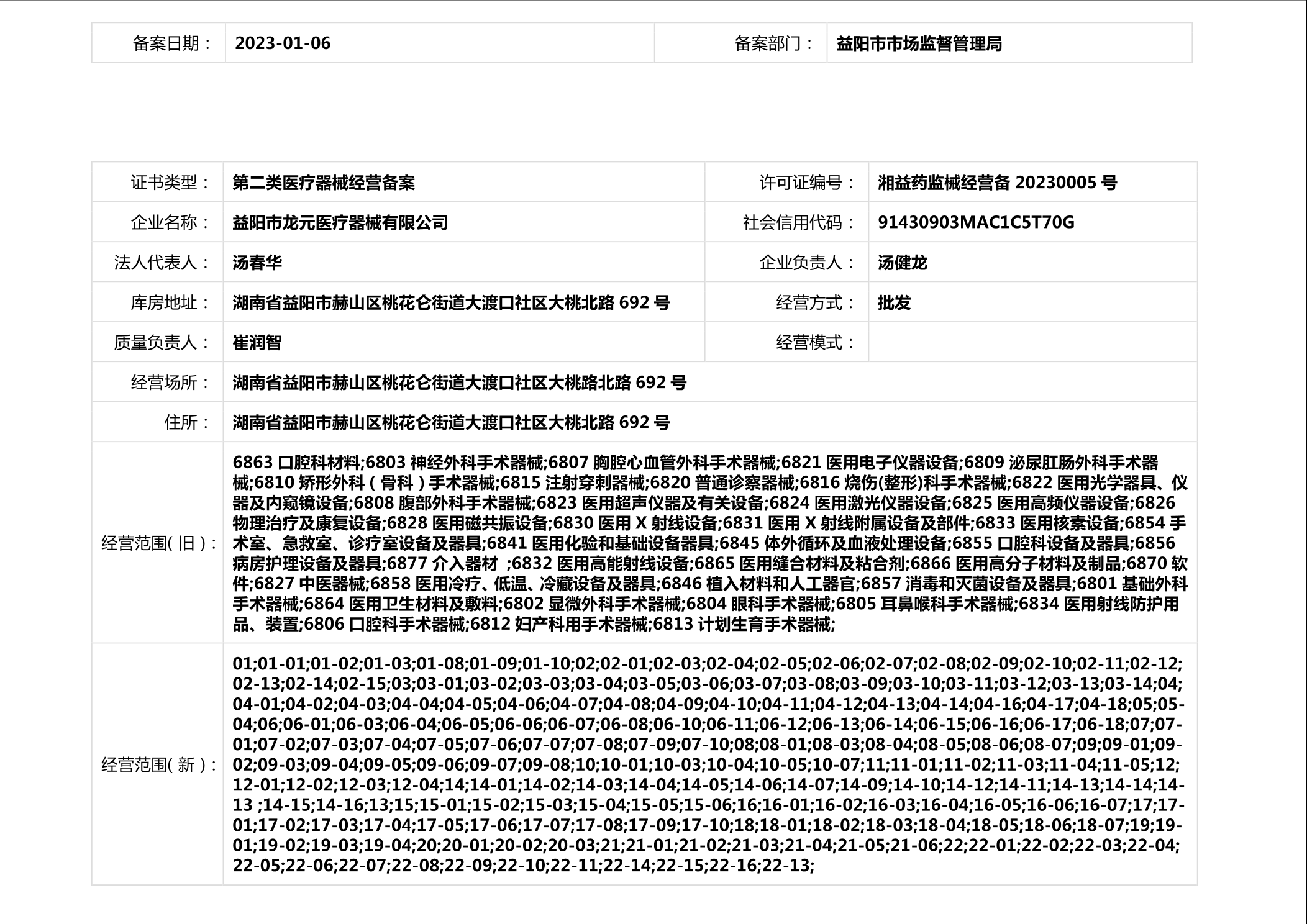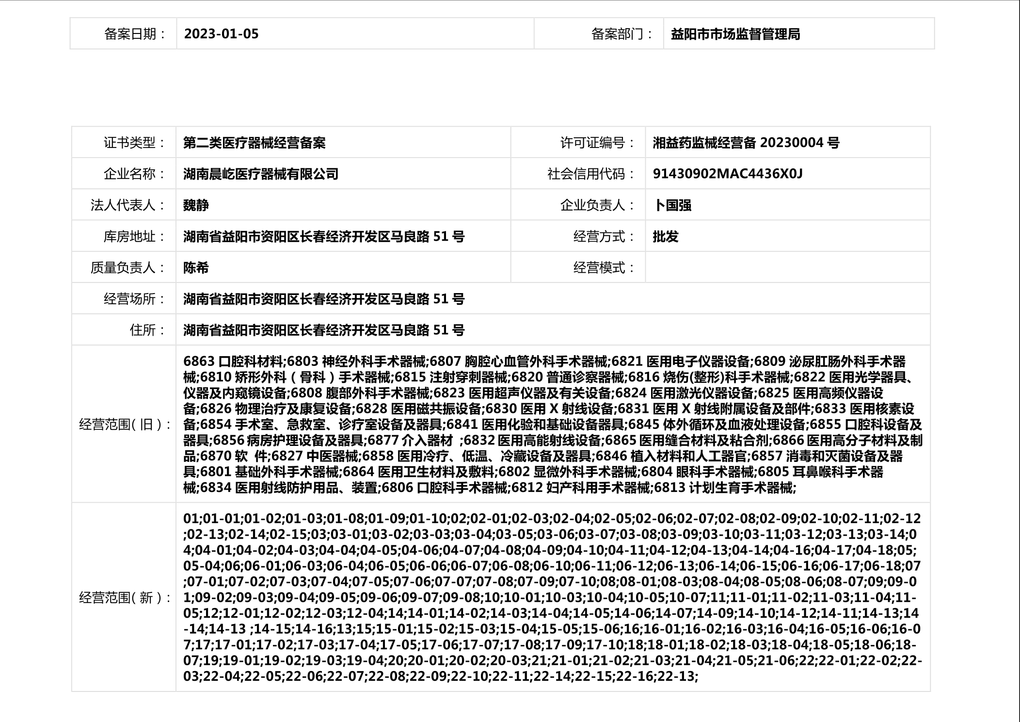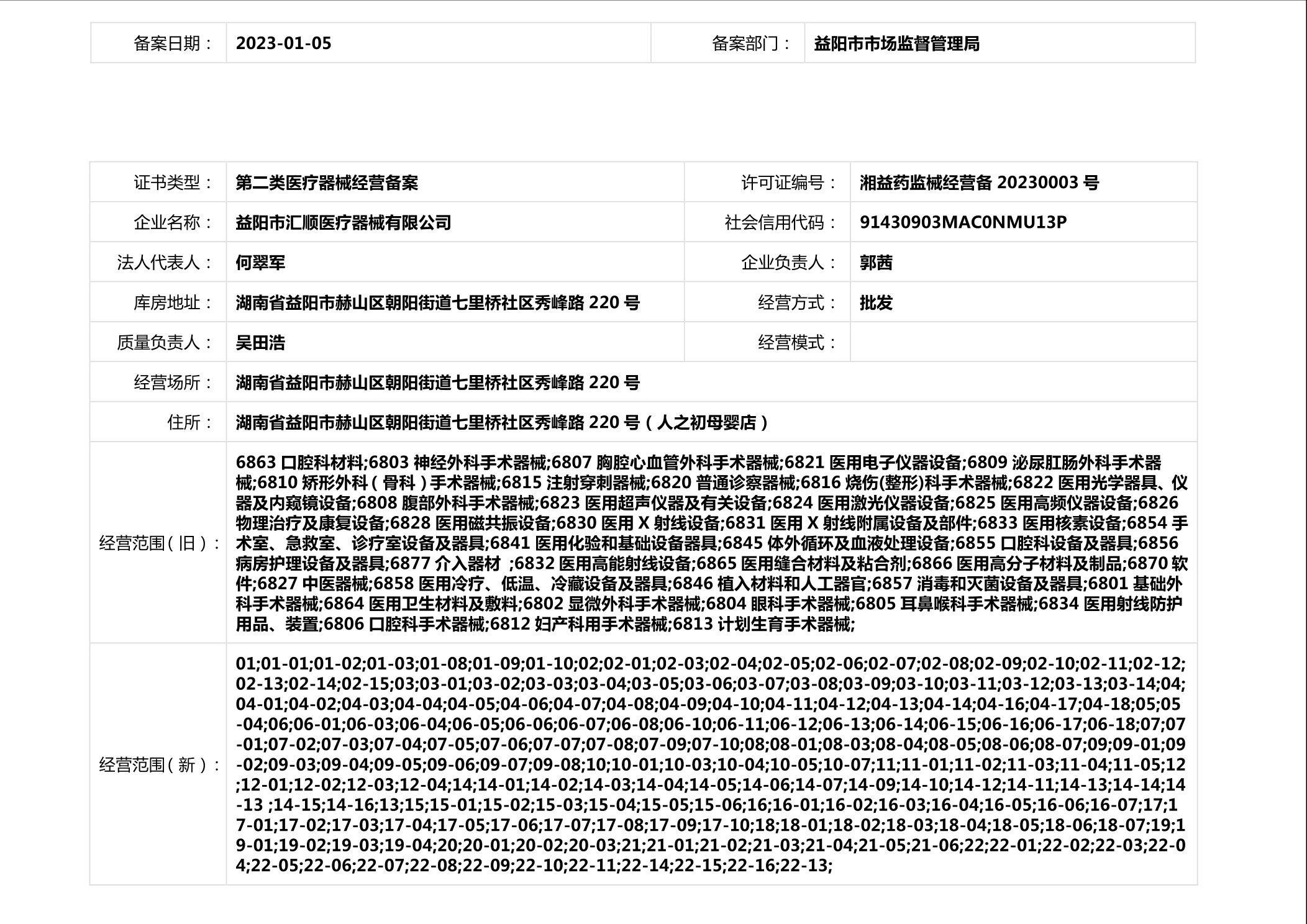 | 医疗器械生产经营许可(备案)信息公示(2023年第01号) |