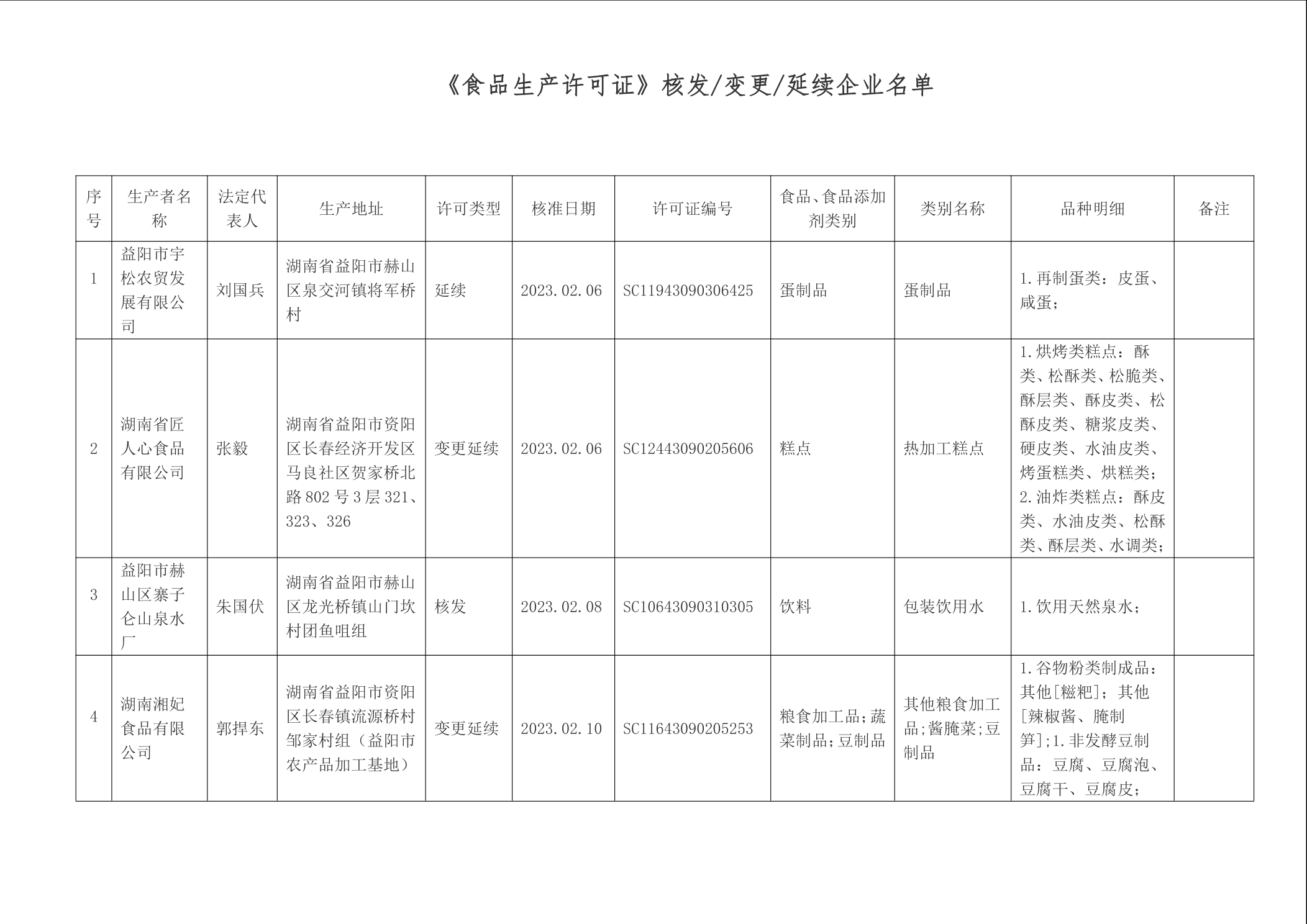 | 2023年第2期《食品生产许可证》核发/变更/延续公告 |