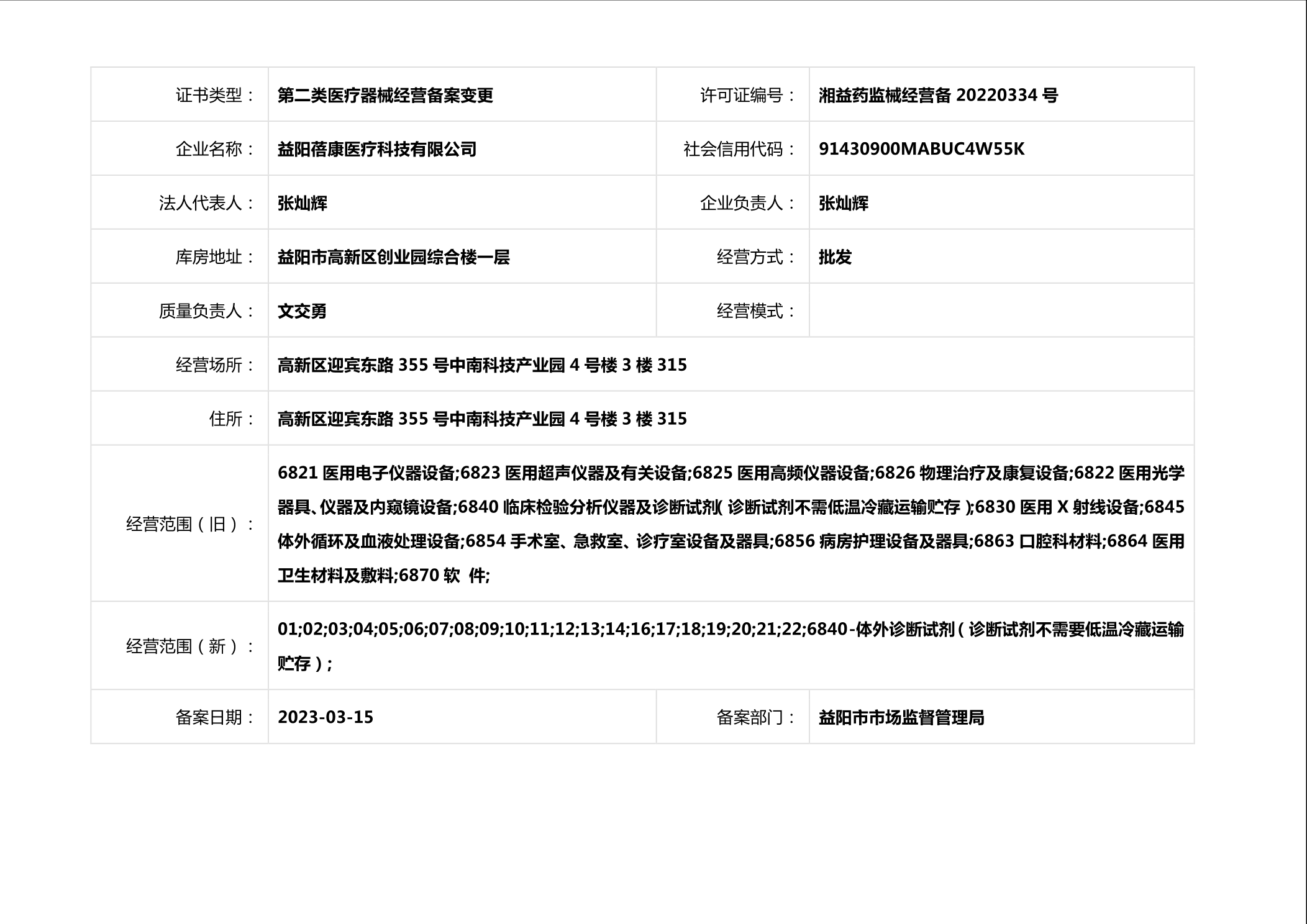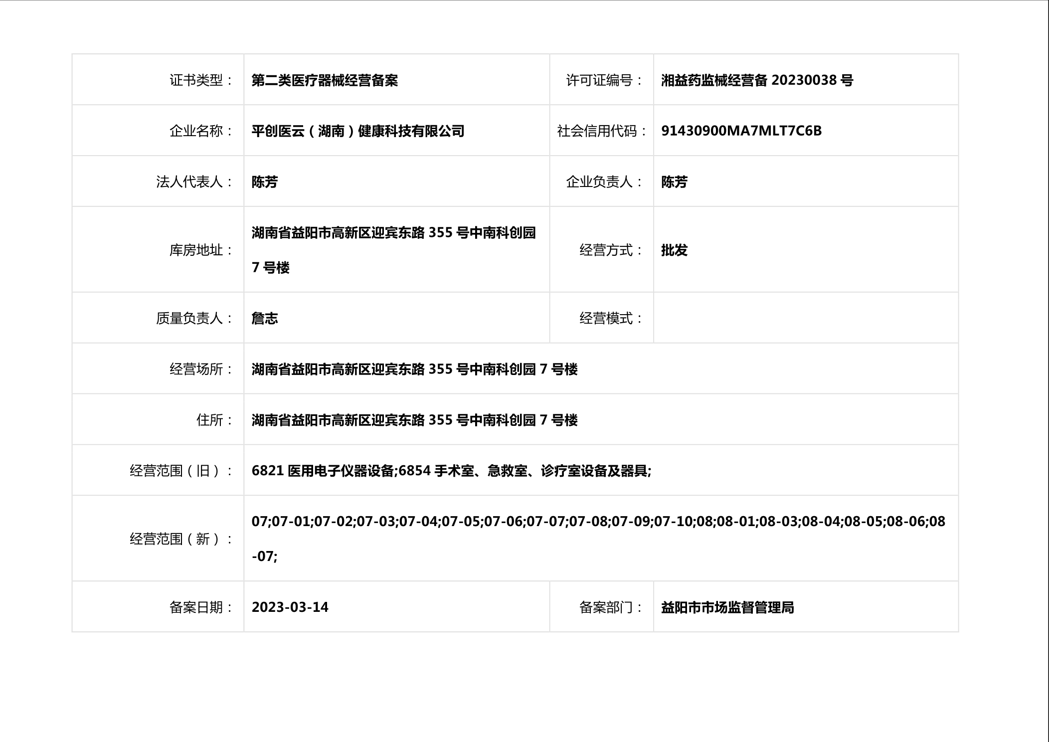 | 医疗器械生产经营许可(备案)信息公示(2023年第10号) |