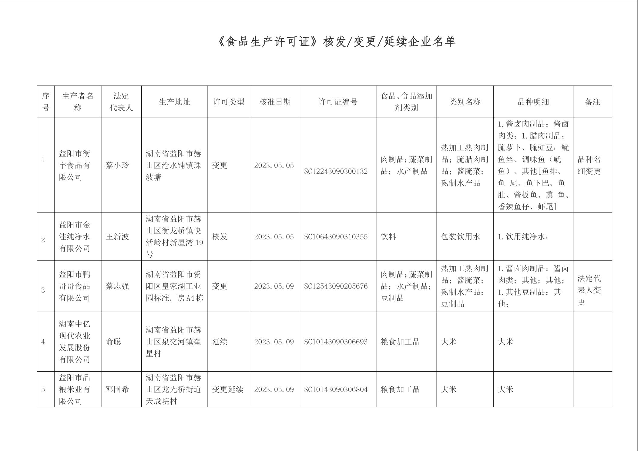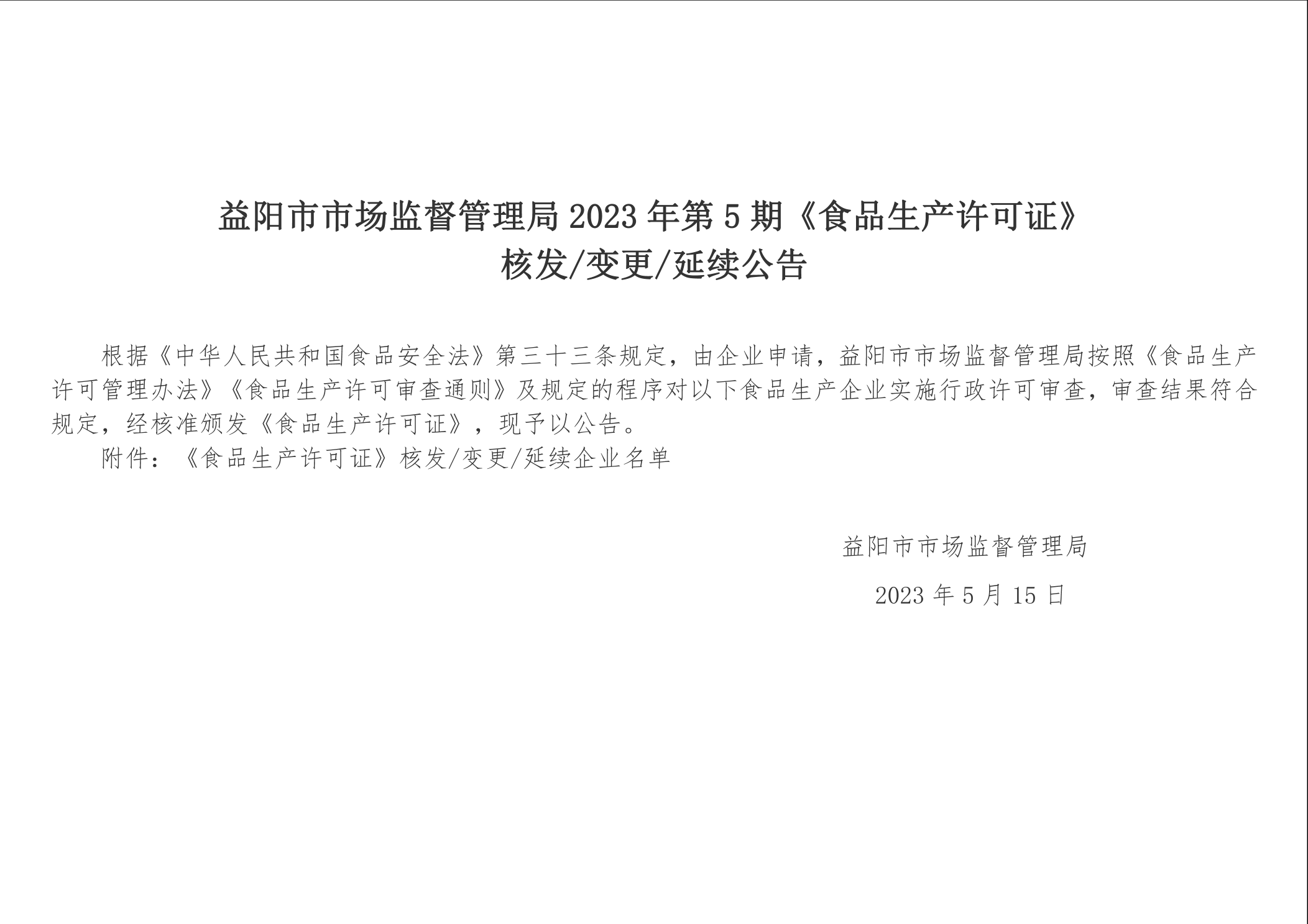 | 2023年第5期《食品生产许可证》核发/变更/延续公告 |