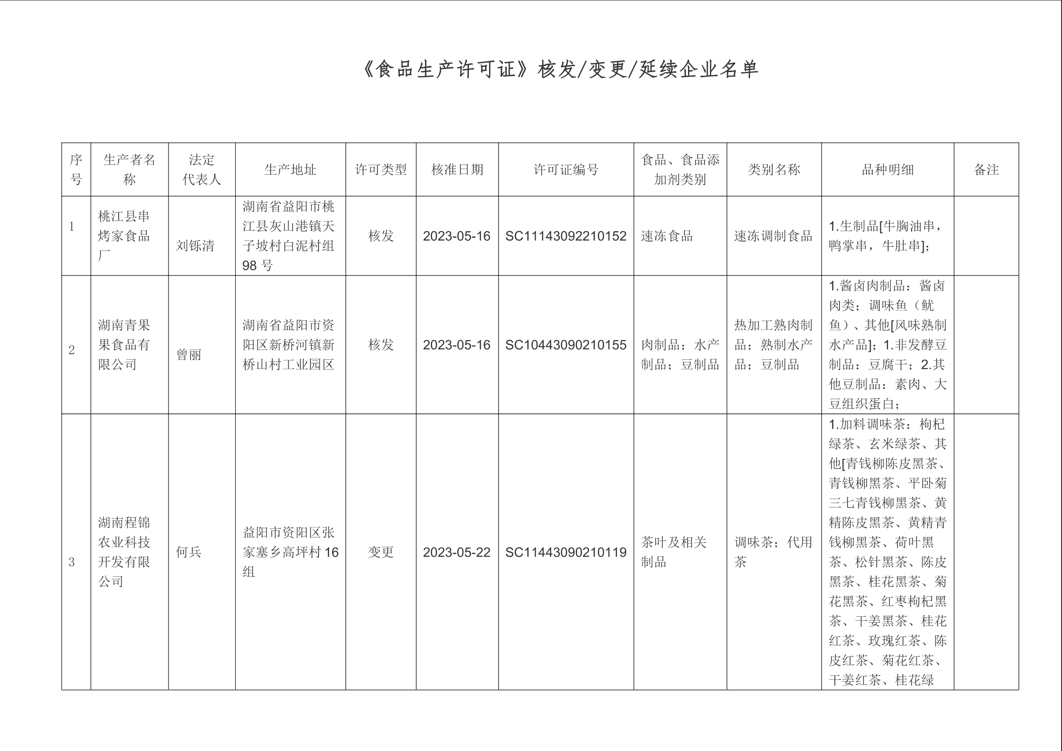 | 2023年第6期《食品生产许可证》核发/变更/延续公告 |