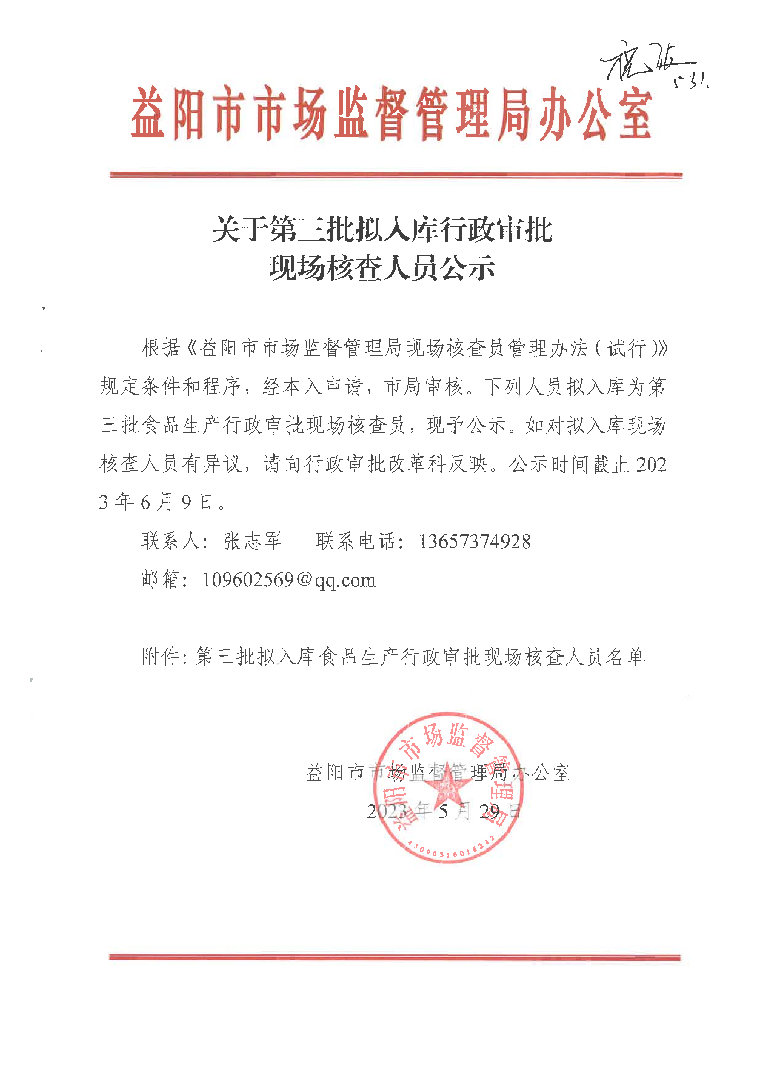 | 关于第三批拟入库行政审批现场核查人员公示 |