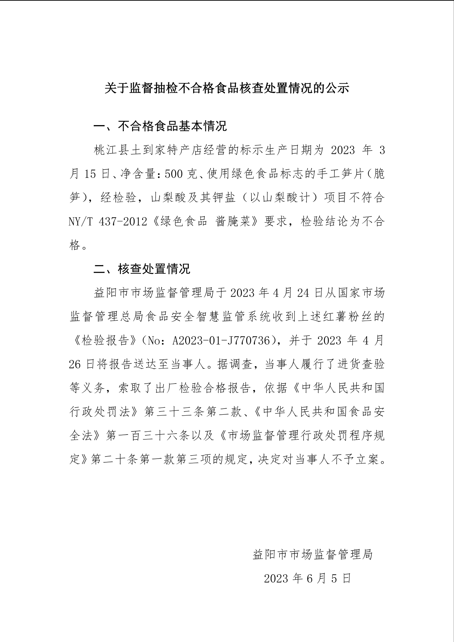 | 关于监督抽检不合格食品核查处置情况的公示(2023年6月05日) |