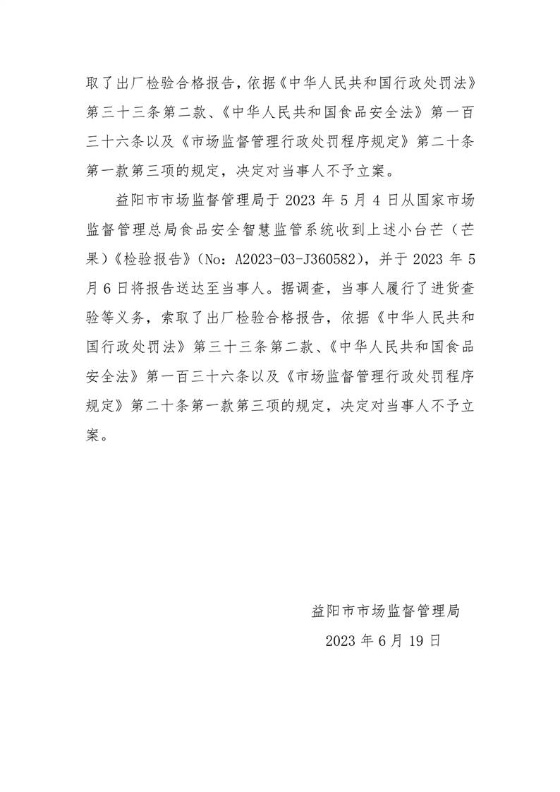 | 关于监督抽检不合格食品核查处置情况的公示(2023年6月19日) |