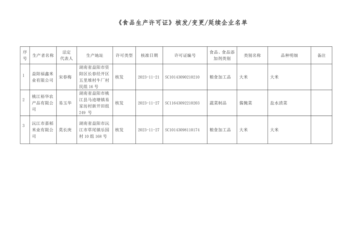 | 2023年第15期《食品生产许可证》核发/变更/延续公告 |